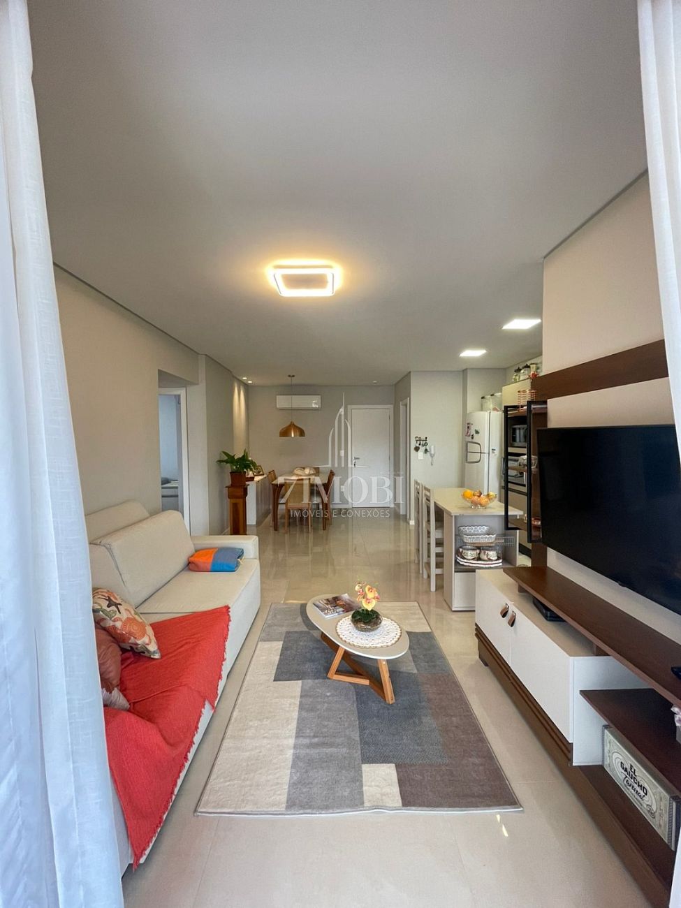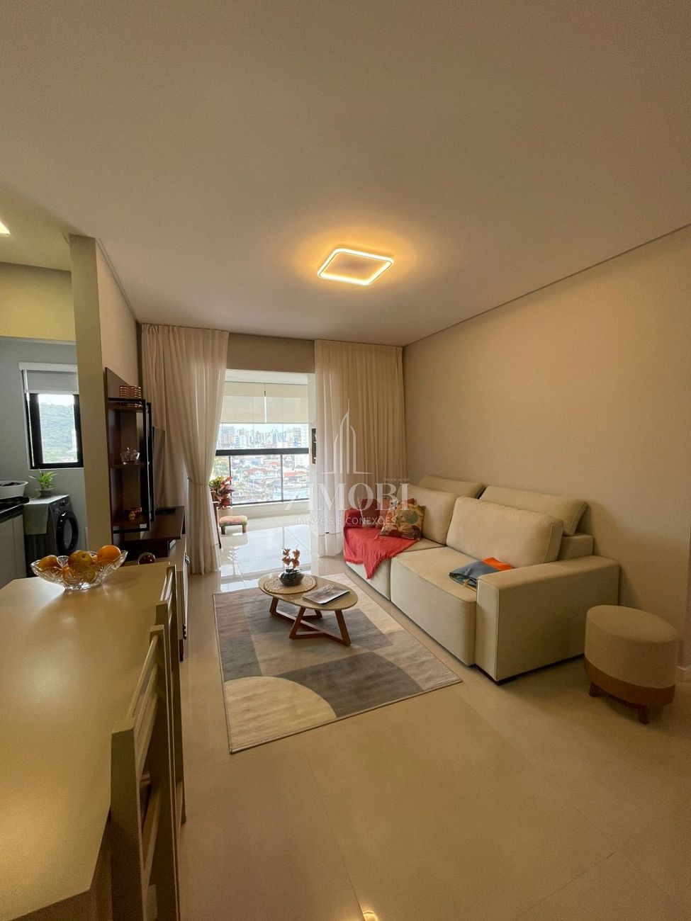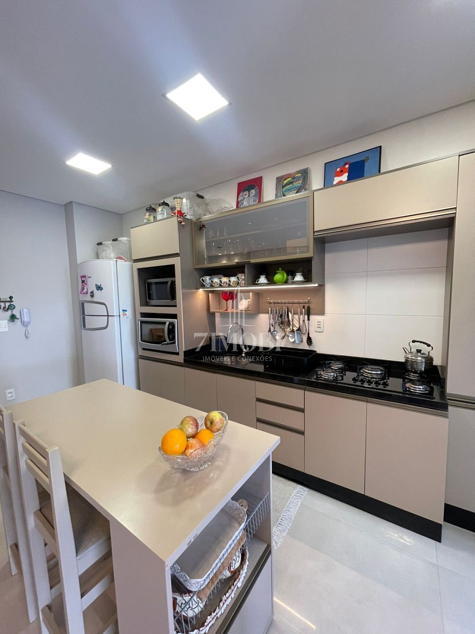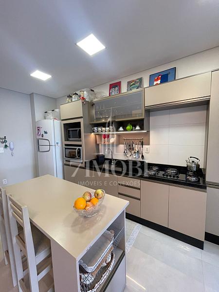 A sala ampla integra perfeitamente os espaços de estar e jantar, criando um ambiente agradável para receber amigos e familiares. A cozinha funcional possui excelente aproveitamento de espaço e fácil acesso à área de serviço espaçosa, um grande diferencial do imóvel, ideal para organização, lavanderia e apoio doméstico.