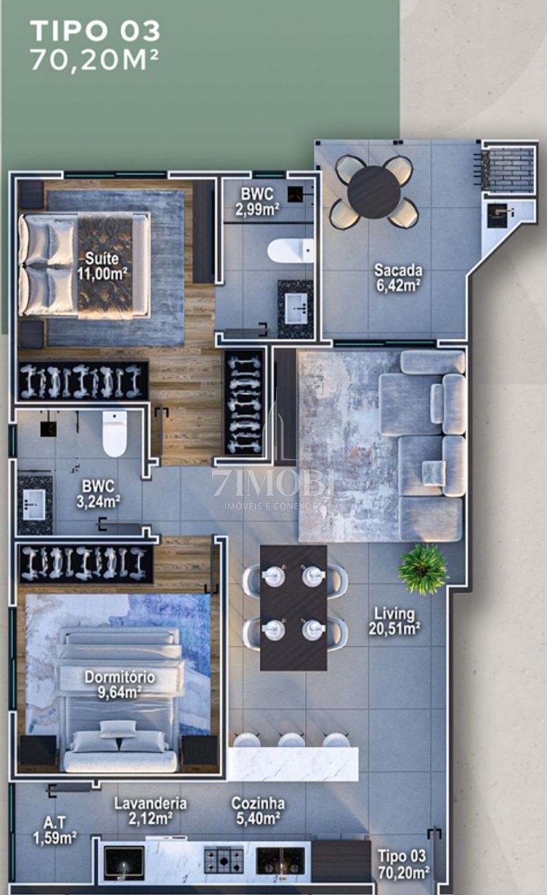 70,20 m² de área privativa